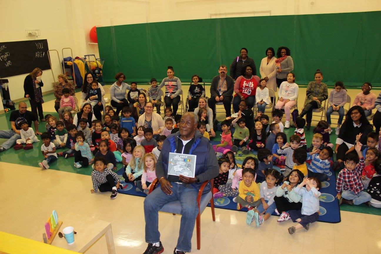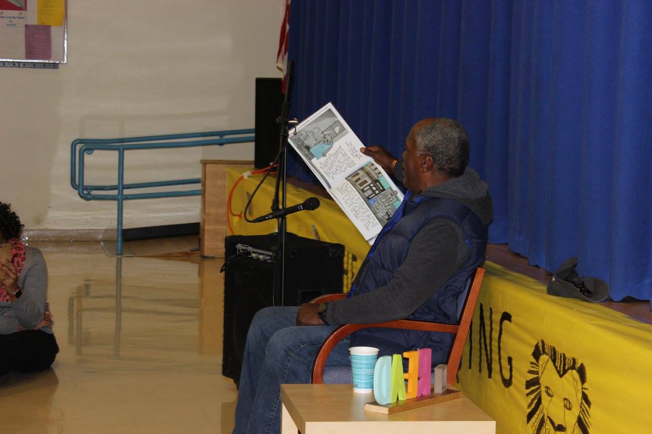 A New Jersey native, Mr. Amos shared stories of his college years at Colorado State University where he graduated with a degree in sociology. He spoke of his time as a social worker & his love for cartoon drawing and writing, especially for children. As he began to read, with his strong and animated delivery, he captivated the interest of even the youngest students and brought the story to life.