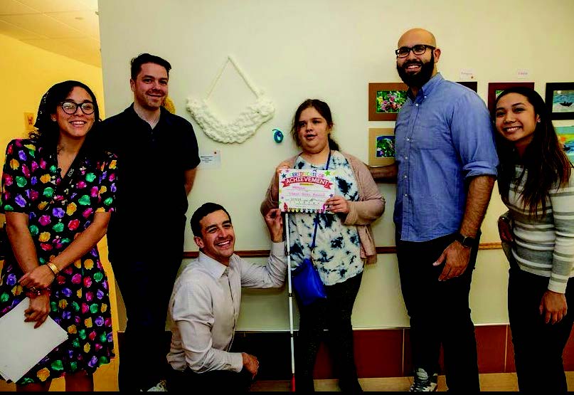 What began as a series of art classes for the school’s Adult Services clients grew to include the students’ works and showings at multiple galleries throughout Jersey City. St. Joseph’s Art Instructor, Athena Toledo, designed an inspiring and challenging series of art sessions for all age groups. Ms. Toledo, an aspiring art therapist, works through the healing power of art. She employs a hand-over-hand method and emphasizes process art to help visually impaired students express themselves creatively.